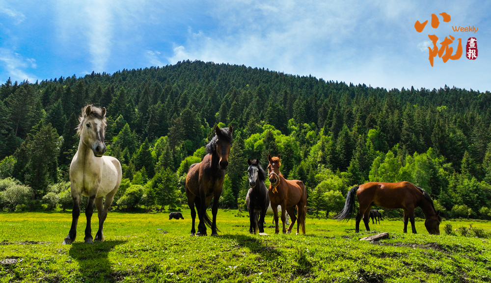 云朵潔白如雪,碧綠的草甸上繁花似錦,散發著淡淡的清香,引得蜜蜂和蝴蝶翩翩起舞。成群的牦牛與駿馬悠然自得地啃食著青草,牧民的帳篷點綴其間,炊煙裊裊升起,勾勒出一幅寧靜祥和的牧居生活圖景。