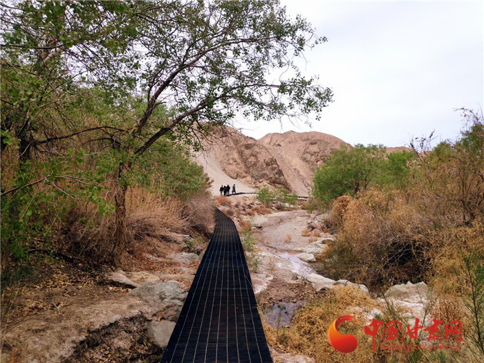 順著懸泉置遺址向峽谷前行,小路的盡頭有一片綠洲,蘆葦叢生,郁郁蔥蔥,在蘆葦于巨石之間山泉流淌源源不斷,由于山泉水從不是從地下滲出,而是從懸空流出,所有才有懸泉之名。也正是懸泉滋養,為四周處于戈壁之中的懸泉置提供了穩定水源,讓這里成為絲綢之路上的重要驛置。
