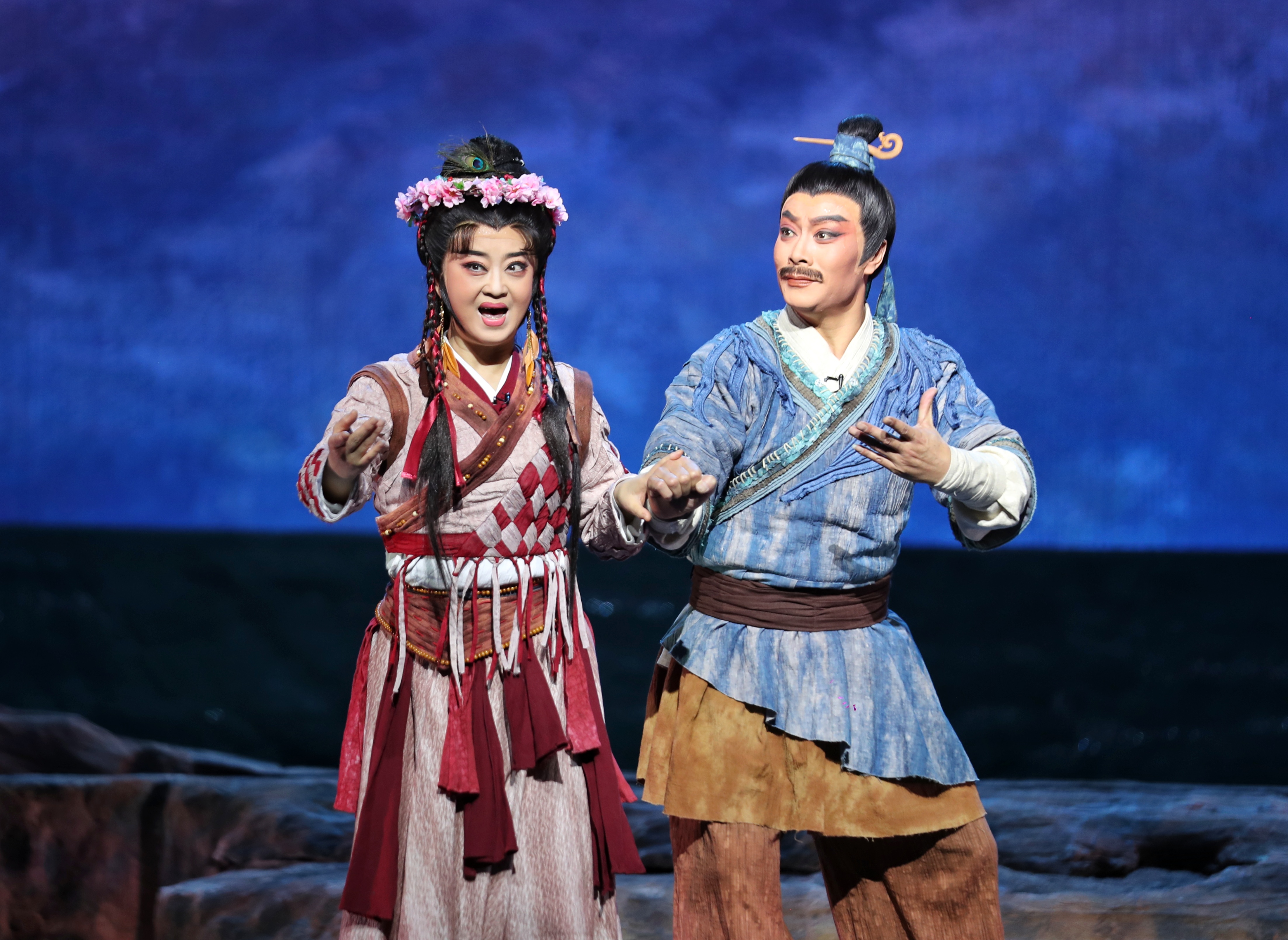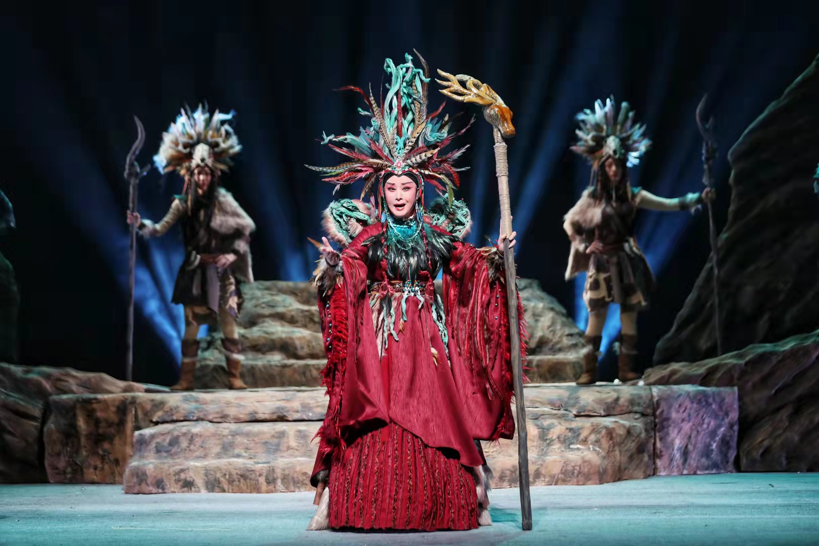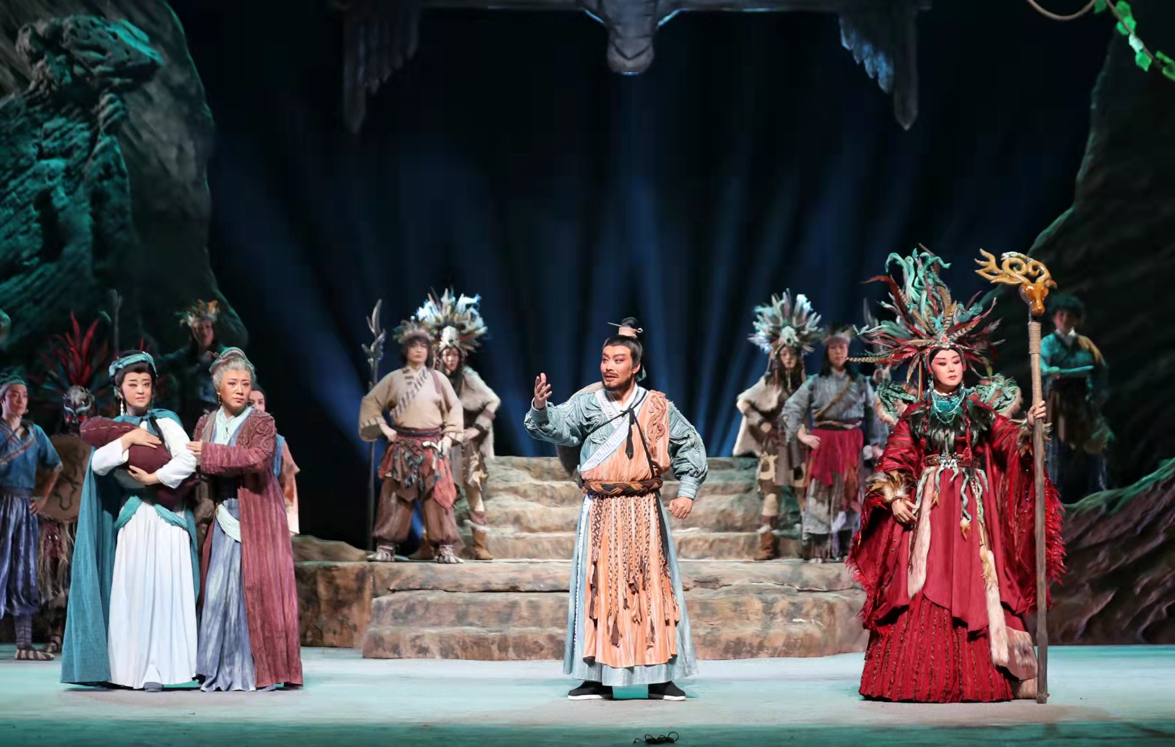 在兩個多小時的(de)(de)演(yan)(yan)出(chu)中(zhong)(zhong),扮(ban)演(yan)(yan)“大禹”的(de)(de)邵(shao)炳(bing)德(de)唱念做打(da)俱佳(jia),將(jiang)一(yi)個人性化(hua)、頂(ding)天立地的(de)(de)大禹形象立于舞臺之上(shang),三朵隴劇(ju)“梅(mei)花(hua)”雷通霞、佟紅(hong)梅(mei)、竇鳳(feng)霞,分(fen)別在劇(ju)中(zhong)(zhong)扮(ban)演(yan)(yan)山(shan)戎、大禹妻子涂嬌和禹母的(de)(de)角色,全體演(yan)(yan)員(yuan)以(yi)精(jing)湛的(de)(de)表(biao)演(yan)(yan),將(jiang)大禹治水過程中(zhong)(zhong)天理與(yu)人性、親(qin)情與(yu)仇恨、生與(yu)死的(de)(de)抉(jue)擇演(yan)(yan)繹(yi)得淋漓盡致(zhi)。