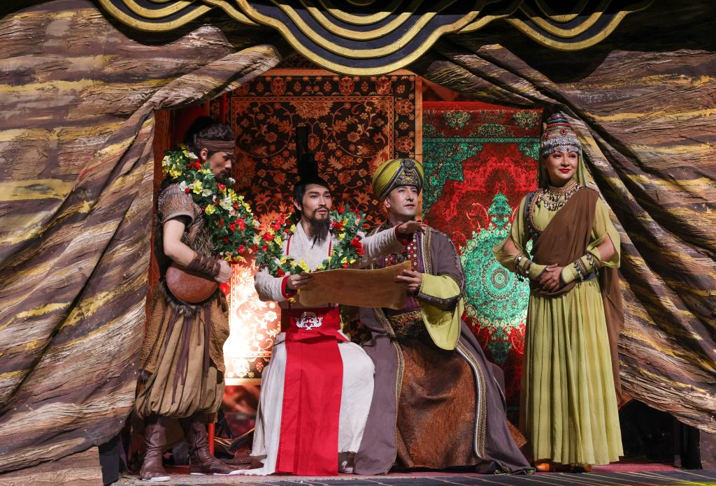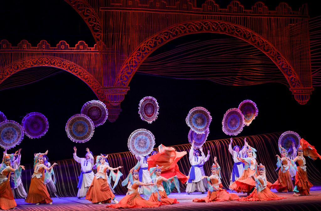 10月27日(ri)晚,在(zai)烏魯(lu)木(mu)(mu)齊(qi)(qi)文化中(zhong)心(xin)大(da)劇(ju)院(yuan),演員在(zai)舞(wu)劇(ju)《張騫》中(zhong)表(biao)演。 10月27日(ri)晚,以漢代張騫出使(shi)(shi)西域(yu)為藍本創作(zuo)的(de)重大(da)歷(li)史題(ti)材(cai)舞(wu)劇(ju)《張騫》,在(zai)烏魯(lu)木(mu)(mu)齊(qi)(qi)文化中(zhong)心(xin)大(da)劇(ju)院(yuan)首演。該劇(ju)由《授節》《守節》《傳節》《使(shi)(shi)節》四幕(mu)組(zu)成,演繹(yi)了張騫出使(shi)(shi)西域(yu)的(de)“鑿空之旅”,展現(xian)了各民族廣泛交往、全面交流、深度交融(rong)的(de)生動場景。 新華社記者 王(wang)菲 攝(she)