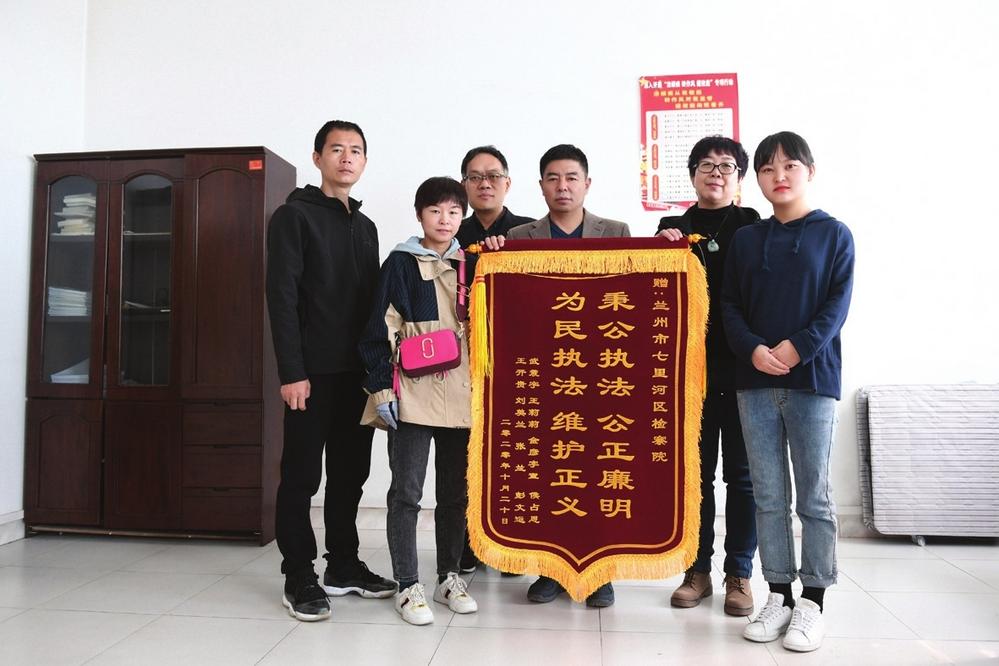中國甘肅網10月27日訊 據蘭州晚(wan)報報道(dao)(記者(zhe) 許沛潔 文/圖) “今天(tian),我們(men)專程過來(lai)感(gan)謝各位檢(jian)察(cha)(cha)官。你們(men)維(wei)護了公(gong)平(ping)正義,如(ru)果沒有(you)檢(jian)察(cha)(cha)院的(de)依法監督,我們(men)這8個家庭就要背負287萬元的(de)債(zhai)務!”這份感(gan)謝來(lai)自(zi)七(qi)里(li)(li)河區(qu)檢(jian)察(cha)(cha)院辦理的(de)一起民事審(shen)判監督系列案(an)件的(de)多(duo)名申請人(ren)(ren)。10月26日,他(ta)們(men)將一面錦(jin)旗交到了七(qi)里(li)(li)河區(qu)檢(jian)察(cha)(cha)院梁德安(an)副(fu)檢(jian)察(cha)(cha)長和第四檢(jian)察(cha)(cha)部負責人(ren)(ren)手中,表達對(dui)辦案(an)檢(jian)察(cha)(cha)官的(de)感(gan)謝之(zhi)情。