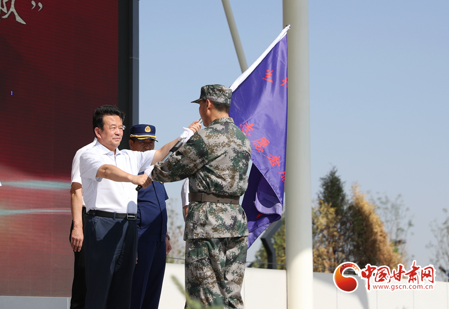 市(shi)委常(chang)委、政法委書記魏晉文同志為蘭州高新(xin)區(qu)“退役(yi)軍(jun)人志愿者服務隊”授(shou)旗
