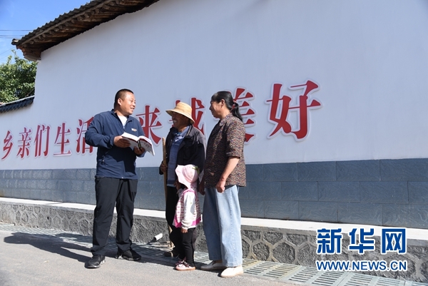 8月5日,元古堆村內,村支書朱惠軍正在進行普法工作。新華社記者 崔翰超 攝