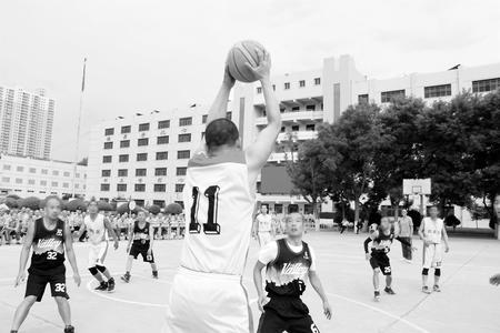比(bi)賽(sai)日18時30分,操場(chang)西(xi)面(mian)進行(xing)的是四監(jian)(jian)區與九(jiu)監(jian)(jian)區的比(bi)賽(sai),進入第三節(jie)比(bi)分僅僅相差2分。九(jiu)監(jian)(jian)區的“閃(shan)電”突(tu)然得球,迅(xun)速突(tu)破,進入對(dui)(dui)方籃下,左手投籃的同時,對(dui)(dui)方犯規,進球有(you)效且加罰一次,九(jiu)監(jian)(jian)區的啦啦隊助威聲一浪高過一浪……