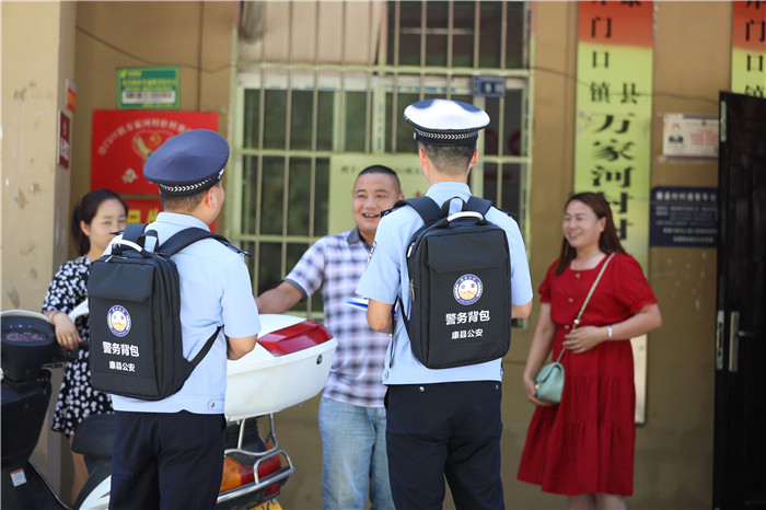 2021年6月,康縣(xian)(xian)公安局總結了豆壩派出所(suo)“背包(bao)(bao)警(jing)(jing)務(wu)”好的做(zuo)法和典型經(jing)驗(yan),向全縣(xian)(xian)18個派出所(suo)全面推廣“背包(bao)(bao)警(jing)(jing)務(wu)”。一次性為全縣(xian)(xian)67名社(she)區民(min)警(jing)(jing)統一購置(zhi)了警(jing)(jing)務(wu)背包(bao)(bao),并增添(tian)了服務(wu)項目,進一步擴充完善“背包(bao)(bao)警(jing)(jing)務(wu)”內(nei)容(rong)。
