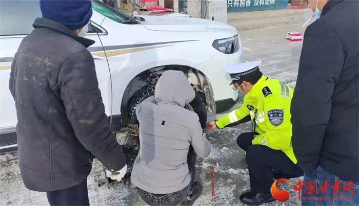 12月16日,永登(deng)縣公安局交警大隊民(min)警為受困群眾(zhong)安裝防滑(hua)鏈。