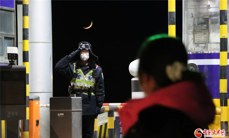 肅北縣公(gong)(gong)安(an)局公(gong)(gong)婆(po)泉邊境檢查站民警(jing)在執勤卡(ka)口執勤