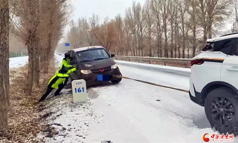 金塔縣公安局交(jiao)警大隊民輔(fu)警救援被困(kun)車(che)輛