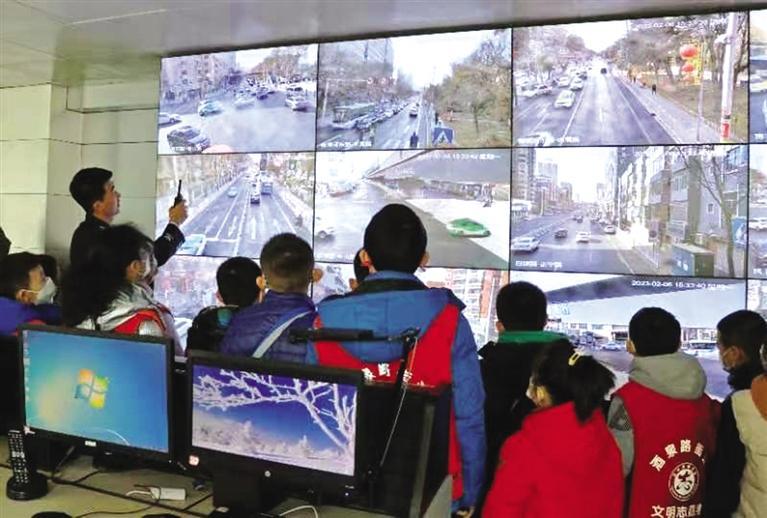 在指揮中心(xin),民(min)警(jing)向孩(hai)子們(men)介紹了監控視(shi)頻,講解(jie)了電(dian)子警(jing)察的作用,并通過監控畫面詳細講解(jie)交警(jing)日常查處違法及出警(jing)派警(jing)流程。