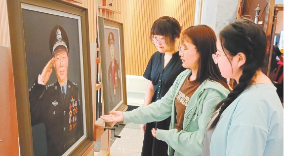 畫像作者向(xiang)民警講述(shu)作品創作過程中如何選(xuan)題、明確作品主(zhu)題以(yi)及表現形式