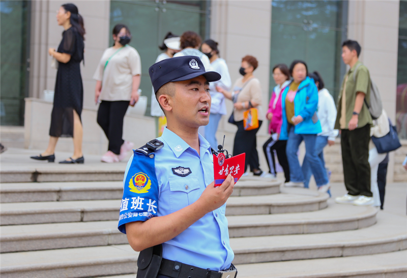 “我(wo)們在博(bo)物館內部(bu)開展(zhan)游客分(fen)流、提醒(xing)引導(dao)、巡邏防控、排查安全隱患(huan)等工作,全力(li)為游客打造(zao)隱患(huan)少、服(fu)務好的(de)平(ping)安游覽環境。同時,我(wo)們的(de)交警同事(shi)也在周(zhou)邊(bian)道路積極(ji)開展(zhan)道路交通(tong)(tong)疏導(dao),根據車流量(liang)情況在不同路段進行分(fen)流,保障游客車輛安全有(you)序通(tong)(tong)行。”西(xi)站派出所(suo)副(fu)所(suo)長魏相昆說(shuo),“甘(gan)肅(su)省博(bo)物館周(zhou)邊(bian)停車緊張(zhang),提醒(xing)游客盡量(liang)乘坐(zuo)公共交通(tong)(tong)工具(ju),如遇突發情況請及時和我(wo)們執勤民警聯系,我(wo)們會全力(li)提供幫助。”