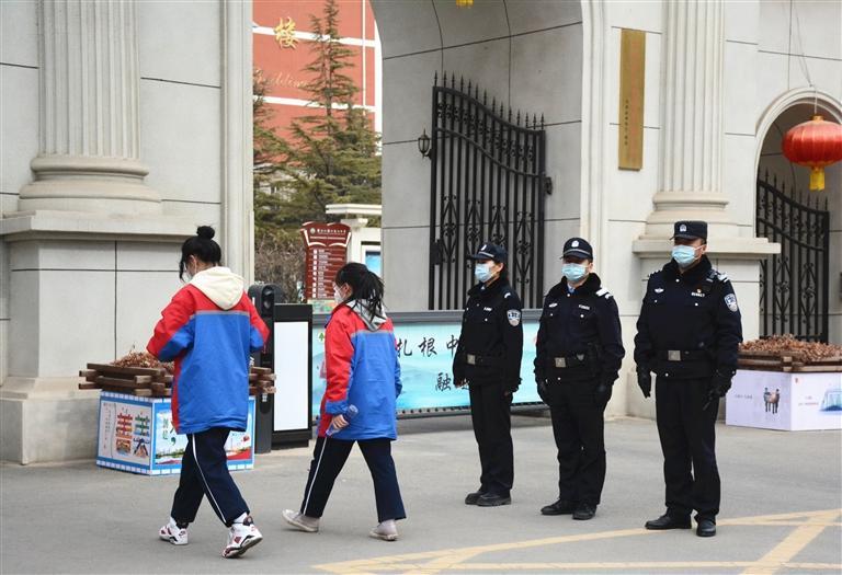 派出(chu)所民警在校園門口執勤(蘭州日(ri)報供圖)