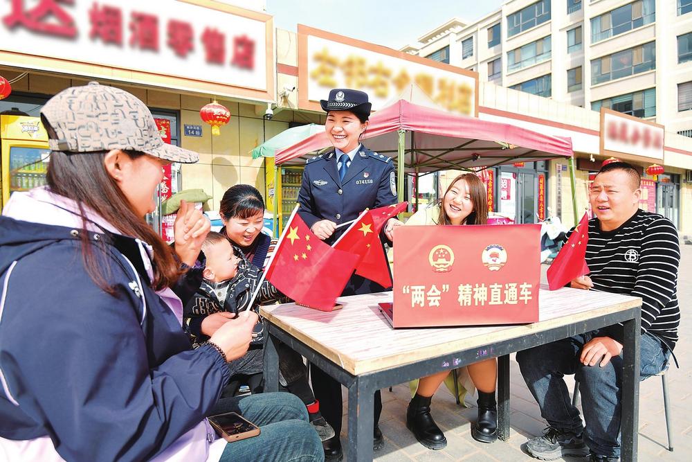 臨澤公安走街入戶與群眾共同學習全國兩會精神