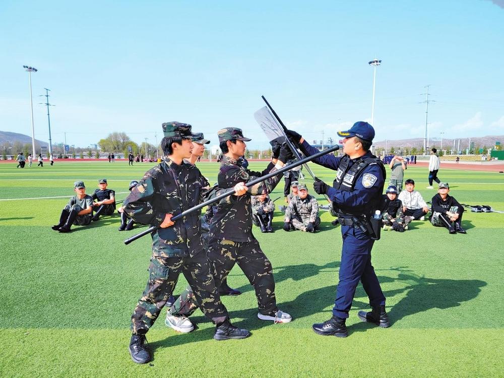 公(gong)安民警(jing)示范演練反(fan)恐(kong)防(fang)暴技能。4月11日,臨洮縣公(gong)安局組織警(jing)務實戰教官到定西市職業技術學校開展反(fan)恐(kong)防(fang)暴演練培訓。新甘肅(su)·甘肅(su)法治報(bao)通訊(xun)員李(li)鴻昌攝