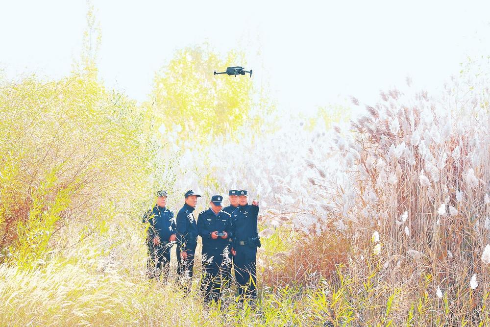 民警在濕地公園利用無人(ren)機(ji)開展巡查(cha)。