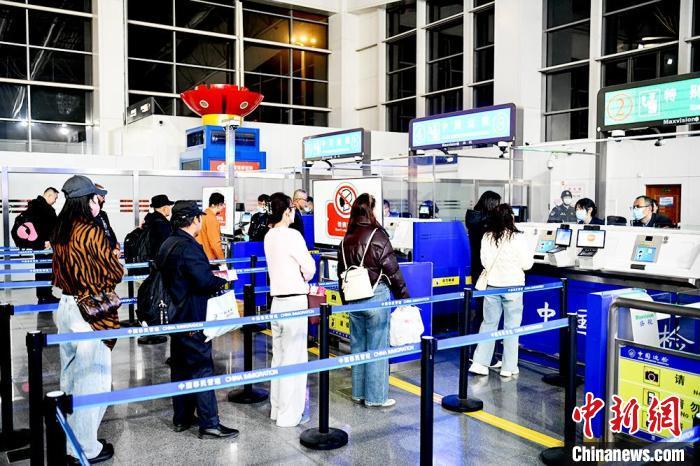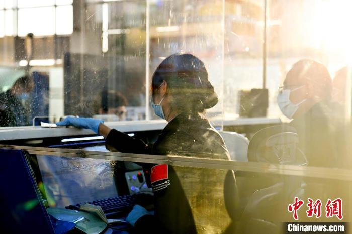2024年11月7日,蘭州(zhou)邊檢(jian)站執勤民警(jing)驗放國際航班旅客。王(wang)翔宇(yu) 攝