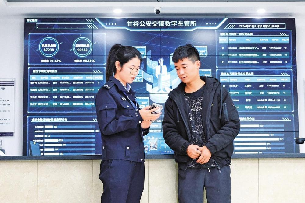 11月11日,民警向群眾介紹“數字(zi)車(che)管所”相關功能板(ban)塊。新甘肅·甘肅法治報通訊員(yuan)黃彥斌攝