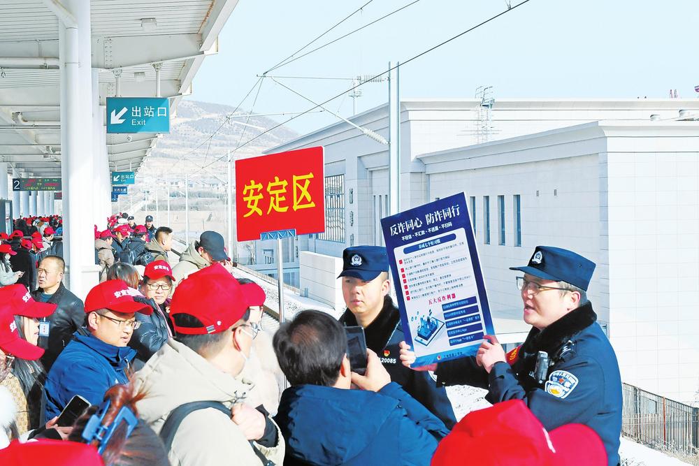 記(ji)者(zhe)了(le)解(jie)到(dao),這批務工(gong)人(ren)員來自定(ding)西(xi)市各縣(xian)區,既有返崗務工(gong)人(ren)員,也有新聘務工(gong)人(ren)員。為保障此(ci)次(ci)高鐵務工(gong)專(zhuan)列順(shun)利開行,蘭州(zhou)鐵路公安(an)(an)處定(ding)西(xi)北(bei)站(zhan)派出所(suo)積極與(yu)定(ding)西(xi)北(bei)車(che)(che)站(zhan)、客運部門通(tong)聯,專(zhuan)門開辟“綠色(se)通(tong)道”,暢通(tong)進站(zhan)、安(an)(an)檢(jian)、檢(jian)票等進站(zhan)環節,劃定(ding)專(zhuan)門候車(che)(che)進站(zhan)區域,同(tong)時增派警(jing)力逐一引導(dao)務工(gong)人(ren)員有序進站(zhan),幫助(zhu)提拿大件行李、講解(jie)防(fang)范電信詐騙小(xiao)妙招,用心用情保障務工(gong)旅客乘車(che)(che)安(an)(an)全。