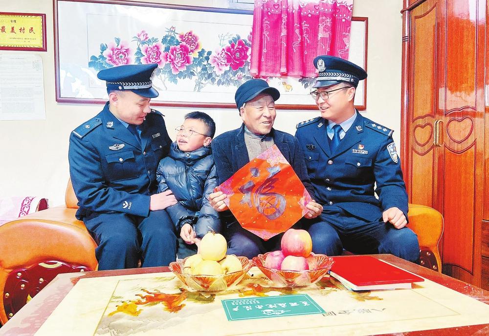 “史大(da)爺,過年(nian)(nian)好呀!我(wo)們(men)送(song)福(fu)來了(le)。”民(min)警小李一邊說(shuo)著,一邊將(jiang)一張福(fu)字遞到(dao)史大(da)爺手中(zhong)。史大(da)爺接(jie)過福(fu)字,笑得合(he)不攏嘴,激動地(di)說(shuo):“謝(xie)謝(xie)你們(men)啊,警察(cha)同志(zhi),這(zhe)福(fu)字往門上一貼,年(nian)(nian)味兒(er)一下子就濃了(le)!平(ping)日里多虧了(le)派出(chu)所民(min)警的照顧,這(zhe)大(da)過年(nian)(nian)的還想著我(wo)們(men),你們(men)辛苦了(le)。”
