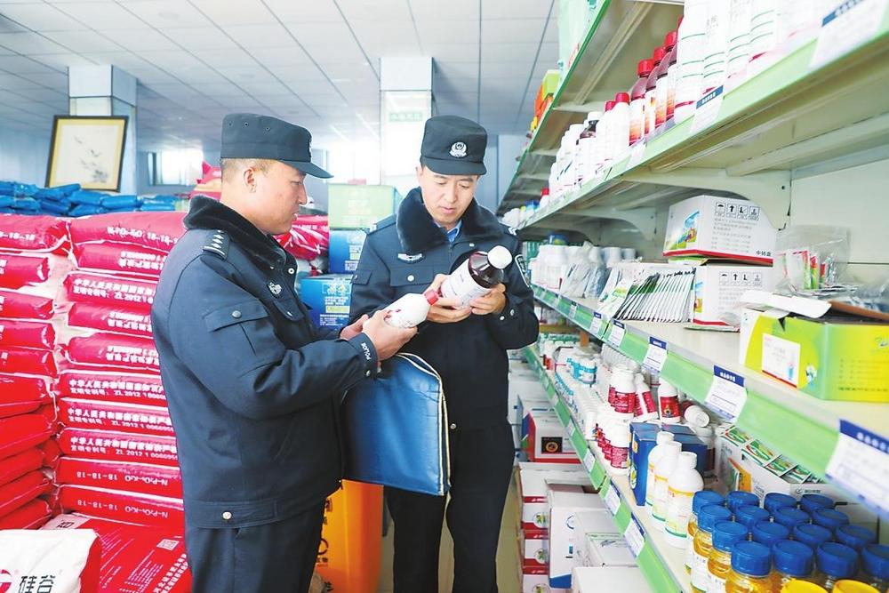 民警在核查農藥安全信息。2月28日,定西市公安局安定分局民警開展農資市場檢查,從源頭把好農資入口關,為春耕生產保駕護航。新甘肅·甘肅法治報通訊員楊永剛攝