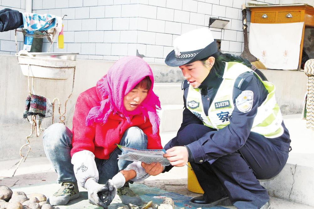 民(min)警(jing)向群眾宣(xuan)傳交通(tong)安(an)全知識。3月10日,臨洮(tao)縣公安(an)局交警(jing)大(da)隊民(min)警(jing)走村入戶,開展交通(tong)安(an)全宣(xuan)傳活動。新甘(gan)肅·甘(gan)肅法治報(bao)通(tong)訊員(yuan)楊(yang)小娟(juan)攝