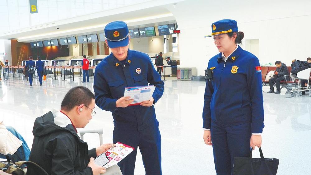 蘭州新區消防宣傳(chuan)人員向(xiang)旅客講解消防安全知識。新甘(gan)肅·甘(gan)肅法治報記(ji)者(zhe)李曉云攝