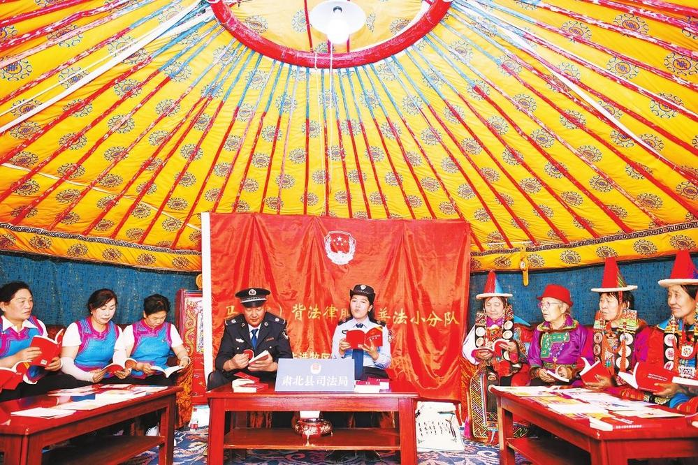 “西出(chu)陽關無故人,而今法治(zhi)伴我行(xing)。”在肅北蒙古族自(zi)治(zhi)縣,黨河(he)峽谷(gu)的(de)風裹挾著悠揚的(de)馬頭(tou)琴聲,將“法治(zhi)烏蘭牧(mu)騎”的(de)歌聲傳(chuan)向遠方;