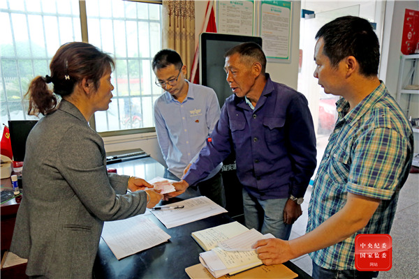 湖南省益(yi)陽市資陽區長春鎮幸福村(cun)村(cun)級義(yi)務(wu)監督員主(zhu)動(dong)履(lv)職,全程參(can)與并(bing)監督發放產(chan)業扶貧分紅資金,確保每一(yi)筆民(min)生資金落到實處。(湖南省益(yi)陽市資陽區紀委監委 張偉敏(min) 攝)
