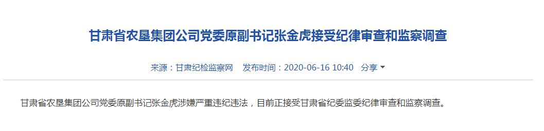甘肅省農墾集團公司黨委原副書記張金虎接受紀律審查和監察調查