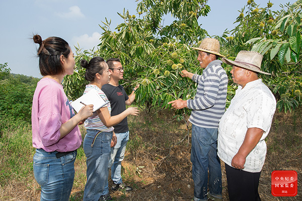 安徽省各級紀檢監察機關緊緊圍繞決戰脫貧攻堅做深做實監督工作,加大群眾身邊腐敗和作風問題治理力度。圖為淮南市八公山區紀檢監察干部深入板栗園區,向種植戶了解惠民政策落實情況。倪慧 攝