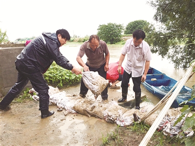 7月13日,江蘇省宜興市丁蜀鎮(zhen)紀檢干部(bu)到該(gai)鎮(zhen)雙廟村(cun)防(fang)汛一(yi)線,在督促履行抗洪搶險職責(ze)的同時,與當(dang)地(di)干部(bu)群眾一(yi)道加固河堤。毛(mao)光云(yun) 攝