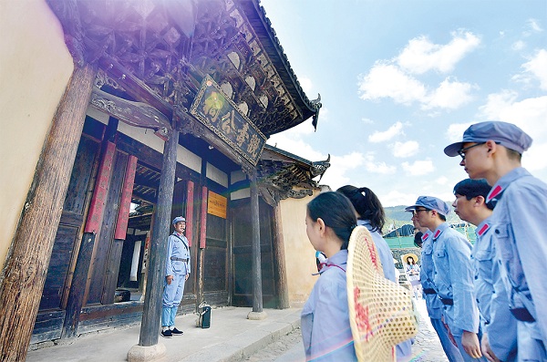 福建省(sheng)長(chang)汀縣中復村的紅軍烈士(shi)后代向(xiang)參觀學習的黨員干(gan)部講述長(chang)征的故(gu)事。 新華社記者 魏(wei)培全 攝