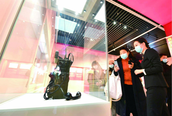日前(qian),“紅(hong)色電波中(zhong)的領袖風(feng)范——毛澤東同志香山時(shi)期發布(bu)電報(bao)手稿”專(zhuan)題展覽在北(bei)京香山革命(ming)紀念館舉行。圖為觀眾在觀看(kan)拍攝展出的電臺。(圖片來源:人(ren)民視(shi)覺)