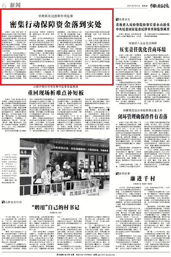 甘肅抓實過渡期專項監督 密集行動保障資金落到實處