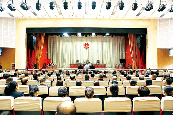 圖為4月(yue)21日(ri),蘭州(zhou)市(shi)中級(ji)人民法院開庭審理柳豐德受賄、行賄案。 (蘭州(zhou)市(shi)中級(ji)人民法院供圖)