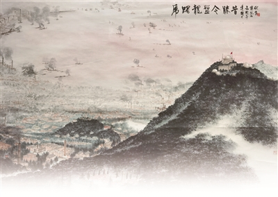1949年4月(yue)23日,人民(min)解放(fang)軍占領南(nan)(nan)京。毛澤東聞訊后,欣(xin)然寫下這首(shou)詩,描(miao)寫了人民(min)解放(fang)軍橫渡(du)長(chang)江(jiang)、解放(fang)南(nan)(nan)京的(de)雄(xiong)偉壯闊(kuo)、氣勢磅(bang)礴場面。在畫(hua)作中,畫(hua)家描(miao)繪的(de)是南(nan)(nan)京城的(de)壯麗景色,沐(mu)浴在朝暉(hui)之中的(de)紫(zi)(zi)金山(shan)及其周圍景致(zhi),以浪漫的(de)詩意呈現出來。近處,紫(zi)(zi)金山(shan)巍峨高聳,天文臺(tai)亦清晰(xi)可見;中景,江(jiang)上輪渡(du)往來,兩岸工(gong)廠(chang)林立,煙(yan)霧繚(liao)繞;遠處,紅霞爛(lan)漫,水天一色。新中國成立后的(de)南(nan)(nan)京繁忙而(er)祥(xiang)和(he),墨色淋漓(li)間,新中國欣(xin)欣(xin)向榮(rong)的(de)景象躍然紙上。