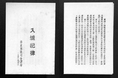 1949年5月(yue),華東軍區司(si)令部印發的(de)《入城紀律》。桂星星 供圖(tu)