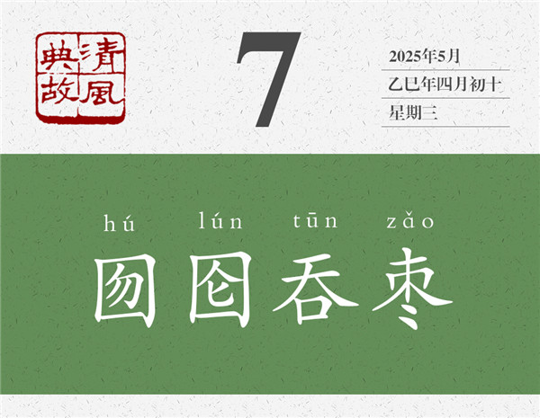 囫(hu)圇(lun),就是完(wan)完(wan)整(zheng)整(zheng)的(de)意思;把棗(zao)(zao)(zao)子(zi)完(wan)完(wan)整(zheng)整(zheng)地(di)(di)吞(tun)(tun)咽下(xia)去(qu),就叫“囫(hu)圇(lun)吞(tun)(tun)棗(zao)(zao)(zao)”。我們常(chang)說的(de)“囫(hu)圇(lun)吞(tun)(tun)棗(zao)(zao)(zao)”,原來是一個傻子(zi)自(zi)作(zuo)聰明的(de)“發(fa)明”。雖然完(wan)完(wan)整(zheng)整(zheng)地(di)(di)吞(tun)(tun)下(xia)了(le)一個棗(zao)(zao)(zao)子(zi),但(dan)嚼(jiao)也不(bu)嚼(jiao),連棗(zao)(zao)(zao)核也不(bu)用吐,連棗(zao)(zao)(zao)子(zi)什么(me)味(wei)道也不(bu)用嘗,直接就咽下(xia)去(qu)了(le),這是聰明之舉嗎?吃東(dong)西為(wei)什么(me)要(yao)咀嚼(jiao),既是為(wei)了(le)品(pin)嘗滋味(wei)、享受過(guo)程,也是為(wei)了(le)更(geng)好地(di)(di)消(xiao)化吸收、獲取營養。后世即以“囫(hu)圇(lun)吞(tun)(tun)棗(zao)(zao)(zao)”為(wei)典(dian),比喻學習(xi)或(huo)借鑒過(guo)程中的(de)死記硬背、照本宣科(ke)現(xian)象。看似據為(wei)己(ji)有了(le),實則只是走了(le)個過(guo)場而已。朱自(zi)清(qing)《論詩學門徑(jing)》:“一個高(gao)中文科(ke)的(de)學生,與其囫(hu)圇(lun)吞(tun)(tun)棗(zao)(zao)(zao)或(huo)走馬看花地(di)(di)讀十(shi)部詩集,不(bu)如仔(zi)仔(zi)細(xi)細(xi)地(di)(di)背誦(song)三(san)百首詩。”