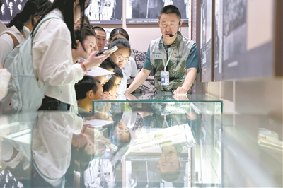 圖為志愿者在中國人(ren)民革(ge)命軍事博物館為參觀者講解抗戰歷史。新華社記者 劉金海 攝