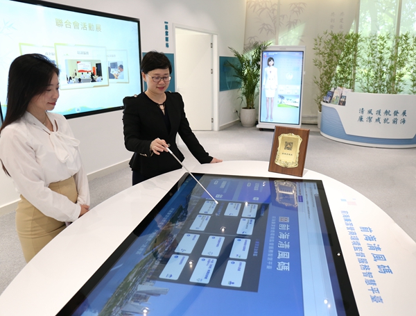 深圳(zhen)市前海深港(gang)現代服務業合作(zuo)區(qu)紀(ji)檢監察工委強化(hua)大數(shu)據信息化(hua)賦能,搭建(jian)監督服務平臺,暢通問(wen)題(ti)反映渠(qu)道。圖為該(gai)紀(ji)檢監察工委工作(zuo)人員介紹“前海清風(feng)碼”使用(yong)方(fang)法。趙師鈔 攝