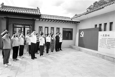 近日,山西省紀委監委機關部分(fen)黨(dang)(dang)員在(zai)晉綏八分(fen)區(專署)舊址(zhi)開展“傳承紅色(se)基(ji)因,砥礪初心(xin)使命”主(zhu)題黨(dang)(dang)日活(huo)動。圖為黨(dang)(dang)員重溫入黨(dang)(dang)誓詞。王鵬(peng)波 攝