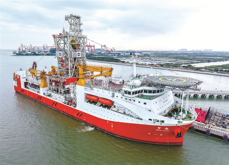 “十(shi)四(si)五”時(shi)(shi)期,我國持(chi)續加強關鍵(jian)核心技術攻關和成果應用(yong),加快高(gao)端(duan)裝備、先進(jin)制造等(deng)領域關鍵(jian)技術攻關,推動(dong)傳統產(chan)業向高(gao)端(duan)化(hua)、智能化(hua)、綠色化(hua)轉型(xing)。圖為擁(yong)有最(zui)大11000米的鉆深能力、我國自主設計(ji)建造的首(shou)艘大洋鉆探船“夢想”號(hao),該船于(yu)“十(shi)四(si)五”時(shi)(shi)期正式入列(資(zi)料圖片(pian))。新華社(she)記者 劉(liu)大偉 攝