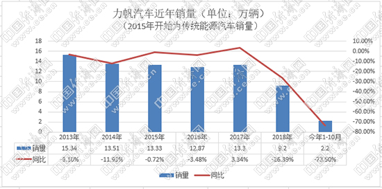 2006年(nian),力(li)(li)(li)(li)帆(fan)推出首款轎(jiao)車(che)力(li)(li)(li)(li)帆(fan)520,新(xin)(xin)車(che)不足(zu)5萬(wan)元的售(shou)價(jia)在(zai)當(dang)時引發關注,月銷(xiao)(xiao)(xiao)量一(yi)度(du)達(da)到5000輛(liang)。2013年(nian),力(li)(li)(li)(li)帆(fan)年(nian)銷(xiao)(xiao)(xiao)售(shou)汽(qi)(qi)車(che)15.34萬(wan)輛(liang),成為汽(qi)(qi)車(che)界的一(yi)匹黑馬。然而,好景不長。自2016年(nian)開(kai)始,力(li)(li)(li)(li)帆(fan)汽(qi)(qi)車(che)進(jin)入下行趨勢(shi),目前(qian)更是步履維艱。力(li)(li)(li)(li)帆(fan)產銷(xiao)(xiao)(xiao)快報顯(xian)示,2019年(nian)1-10月,力(li)(li)(li)(li)帆(fan)傳統乘(cheng)用車(che)累計(ji)銷(xiao)(xiao)(xiao)售(shou)2.2萬(wan)輛(liang),同比(bi)下滑(hua)73.5%,10月僅銷(xiao)(xiao)(xiao)售(shou)29輛(liang);新(xin)(xin)能源累計(ji)銷(xiao)(xiao)(xiao)售(shou)2458輛(liang),同比(bi)下降65.42%,10月僅銷(xiao)(xiao)(xiao)售(shou)423輛(liang)。