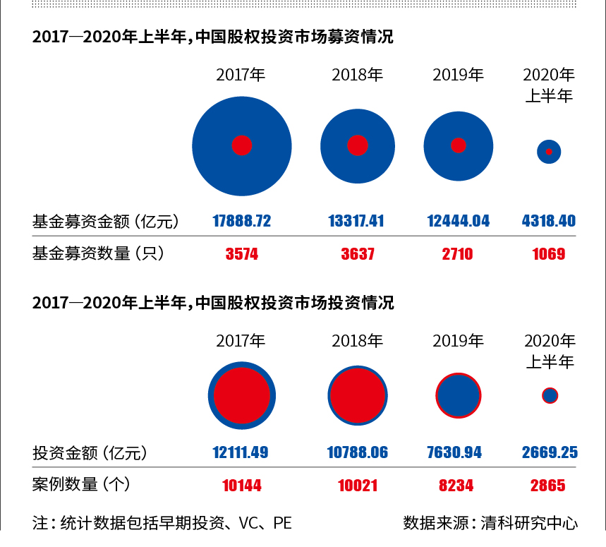 從清科研究(jiu)中(zhong)心(xin)公布的數據,亦可窺見2020年(nian)(nian)(nian)(nian)上半(ban)年(nian)(nian)(nian)(nian)募(mu)資難(nan)與投(tou)資緊的全貌。該(gai)研究(jiu)中(zhong)心(xin)數據顯示,2020年(nian)(nian)(nian)(nian)上半(ban)年(nian)(nian)(nian)(nian)市場(chang)共有1069只基金完成新(xin)一(yi)輪募(mu)集,金額總計4318.40億元(yuan)人(ren)民幣(bi),同比下降29.5%;市場(chang)共發(fa)生2865起投(tou)資事(shi)件(jian),涉及金額2669.25億元(yuan),同比分別下滑32.7%、21.5%。