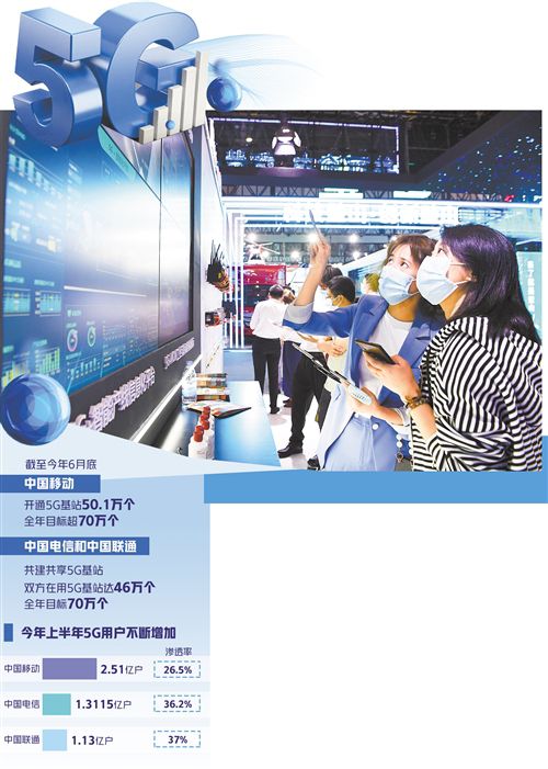 從(cong)5G基(ji)站(zhan)(zhan)看,截至今年(nian)6月底(di),中(zhong)國移(yi)動已開通5G基(ji)站(zhan)(zhan)50.1萬個,全年(nian)目標(biao)超過(guo)70萬個;中(zhong)國電信和中(zhong)國聯通共建(jian)(jian)共享5G基(ji)站(zhan)(zhan),目前雙方在用5G基(ji)站(zhan)(zhan)達(da)46萬個,全年(nian)目標(biao)也(ye)是70萬個。工信部數據顯示,截至今年(nian)6月底(di),我國累計(ji)建(jian)(jian)設5G基(ji)站(zhan)(zhan)96.1萬個,覆蓋全國所有地級以上(shang)城市,5G手機終端(duan)連接數達(da)3.65億戶,占全球80%以上(shang)。