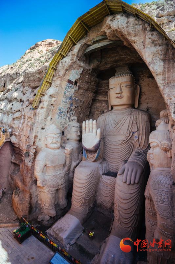 石(shi)窟(ku)(ku)藝術源于(yu)印(yin)度,隨佛教東(dong)傳(chuan),經新疆傳(chuan)入河西。五涼(liang)時期,自張軌(gui)始(shi),尊(zun)崇篤(du)信佛法(fa)。北涼(liang)沮(ju)渠蒙(meng)遜(xun),亦好佛法(fa),在(zai)涼(liang)州(zhou)南山(shan)興(xing)鑿石(shi)窟(ku)(ku),以天(tian)梯山(shan)石(shi)窟(ku)(ku)為代(dai)表的(de)“涼(liang)州(zhou)模式(shi)”諸多石(shi)窟(ku)(ku),先后在(zai)河西地區(qu)開鑿傳(chuan)播(bo),影響了中(zhong)原石(shi)窟(ku)(ku)藝術風格,成為石(shi)窟(ku)(ku)藝術神圣的(de)殿堂(tang)。(武威(wei)市(shi)文(wen)體(ti)廣電和旅游(you)局供圖)