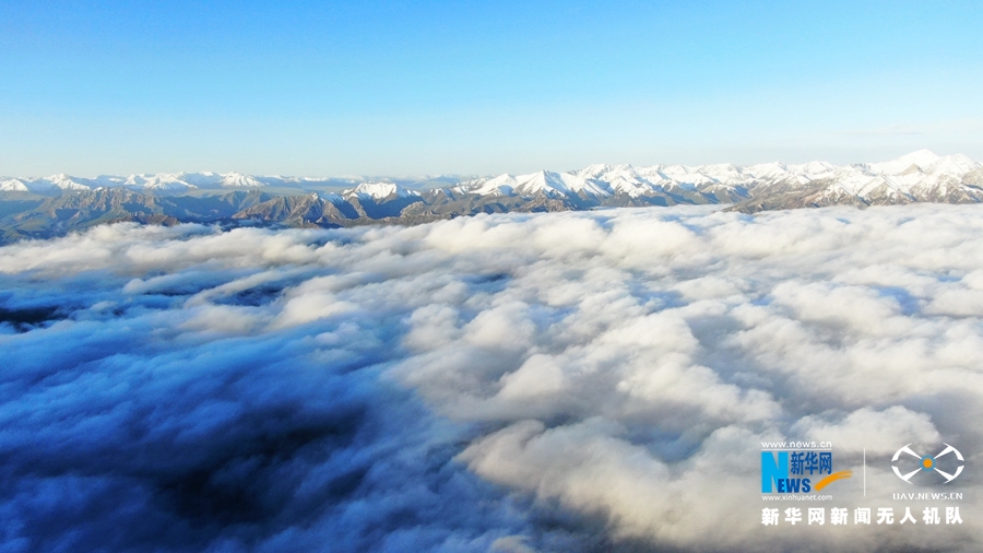 這是8月18日在甘肅省肅南裕(yu)固族自治縣境內拍(pai)攝的祁(qi)連(lian)山云(yun)霧(wu)景觀(guan)。當日,祁(qi)連(lian)山區云(yun)霧(wu)繚(liao)繞,從高空俯(fu)瞰,如(ru)波(bo)濤洶涌起(qi)伏(fu),與(yu)雪山、藍天相互(hu)輝(hui)映,美(mei)不勝收。(飛手(shou):武(wu)雪峰 攝影:安維斌)
