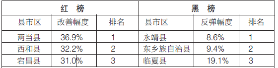 2.紅榜(bang)為改善幅度(du)排名前3位的(de)縣市(shi)區,黑榜(bang)為反彈幅度(du)排名前3位的(de)縣市(shi)區。