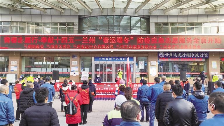 中國甘肅網1月29日訊 據蘭州日報報道(記(ji)者 李沛珂)1月28日(ri),由(you)共青(qing)(qing)團(tuan)蘭(lan)州(zhou)(zhou)(zhou)市(shi)委主辦(ban)(ban)、蘭(lan)州(zhou)(zhou)(zhou)市(shi)青(qing)(qing)年志(zhi)(zhi)愿(yuan)者協會承(cheng)辦(ban)(ban)的(de)“青(qing)(qing)春志(zhi)(zhi)愿(yuan)行(xing)·奉獻(xian)十四(si)五 ”——2021年蘭(lan)州(zhou)(zhou)(zhou)市(shi)春運“暖(nuan)冬行(xing)動(dong)(dong)(dong)”常態化防(fang)疫志(zhi)(zhi)愿(yuan)服務(wu)活動(dong)(dong)(dong)在蘭(lan)州(zhou)(zhou)(zhou)客(ke)運中心啟動(dong)(dong)(dong),來自蘭(lan)州(zhou)(zhou)(zhou)市(shi)12個(ge)志(zhi)(zhi)愿(yuan)服務(wu)組織的(de)志(zhi)(zhi)愿(yuan)者代表參加啟動(dong)(dong)(dong)儀式。