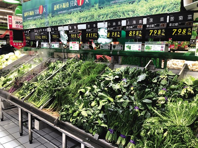 2月2日,記者在雁灘一家大型綜(zong)超看到,綠(lv)葉蔬菜每(mei)(mei)斤(jin)(jin)7元至(zhi)15元,線椒每(mei)(mei)斤(jin)(jin)15.98元,白蘿卜每(mei)(mei)斤(jin)(jin)不足1元,菜花每(mei)(mei)斤(jin)(jin)2.98元。